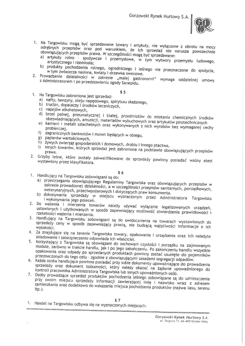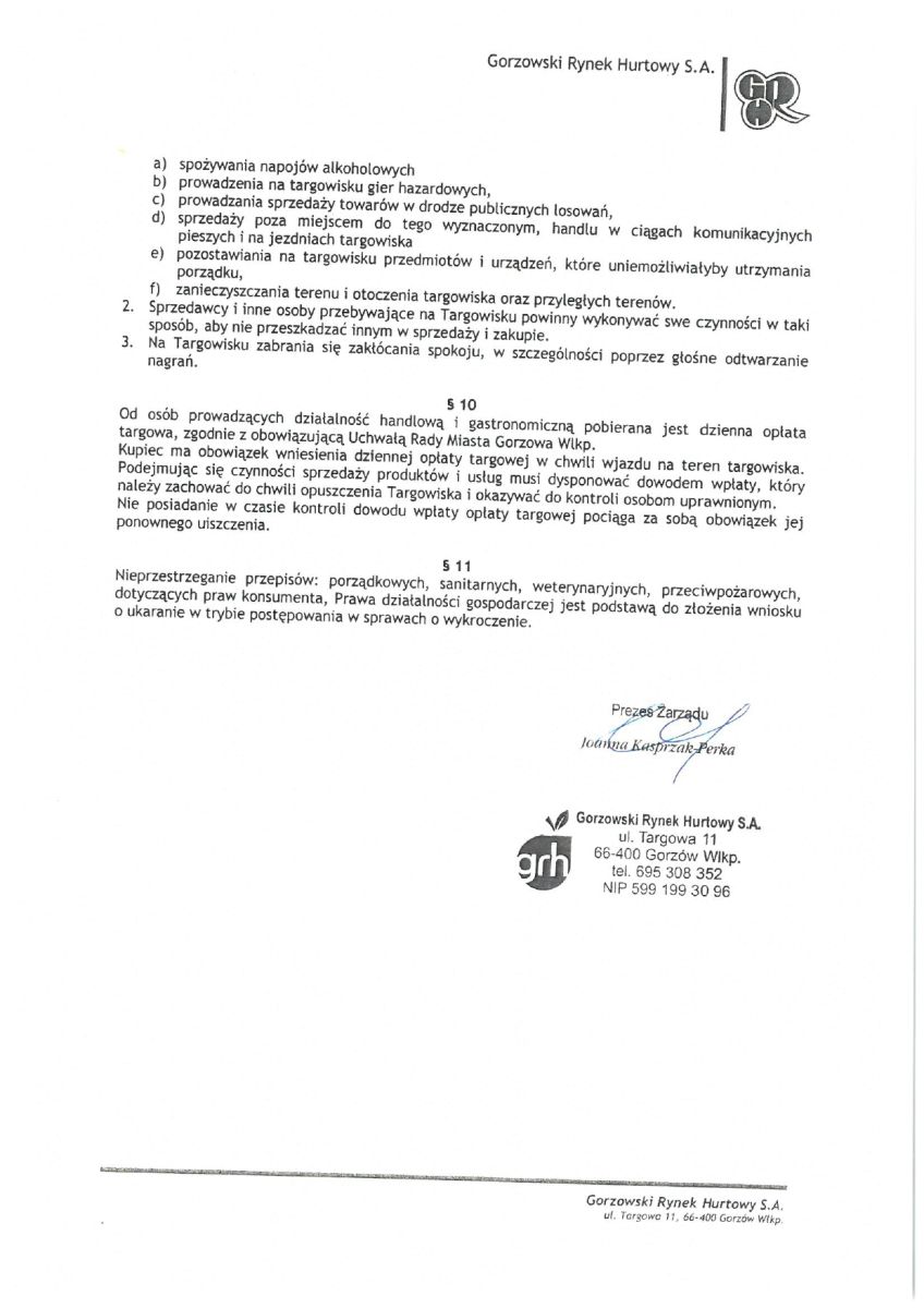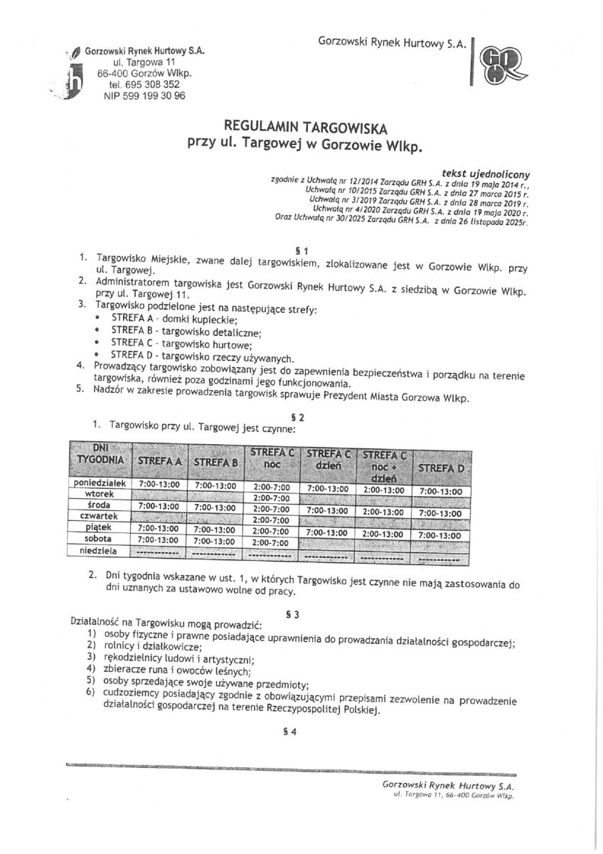 Zaktualizowany Regulamin Targowiska przy ulicy Targowej w Gorzowie Wielkopolskim z dnia 26.11.2025 r